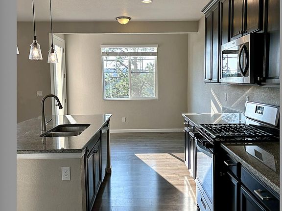 Stunning 2703 sq ft townhome in the heart of Founders Village Castle Rock that backs to OPEN SPACE and right off a walking trail! Nestled in pine trees, the gorgeous home has 3 beds, 2.5 bath, with attached 2 car garage, patio, and full walkout basement (unfinished)! The gourmet kitchen includes granite countertops, gas range, stainless steel appliances, refrigerator, dishwasher, built-in microwave, island seating, dining area and features an open concept layout. Stackable washer/dryer hookups on the main level. Large mud room and pantry are directly off of the garage, making it easy to come in, kick off your shoes and unload the groceries. Includes energy-efficient windows, furnace, A/C, tankless water heater, 2" white blinds throughout and a huge walk in master closet. Main level hardwood floors, carpet in bedrooms. Backs to open space, surrounded by large pine trees, peaceful and picturesque. walking trail is right outside your door! You will enjoy miles of trails and parks, while being Just minutes away from highways, shopping, dining, Douglas County Schools, and multiple outdoor activities! $3,000 a month for one year lease. First months rent due prior to move in. $3,000 deposit due at lease signing. Tenants must show income at least 2.5 X the monthly rent. Rent includes: Refrigerator, grounds maintenance, exterior ground water, snow removal, recycling, trash, park, playground, trail(s) (pool availible with minimal pool tag fee paid by tenant). Rent does not include: household water usage, renters insurance, utilities, cable, internet, washer dryer (hookups availible). $3000 a month for a one year lease. First months rent due prior to move in. $3000 deposit due when lease is signed. Rent includes: Refrigerator, grounds maintenance, exterior ground water, snow removal, recycling, trash, park, playground, trail(s) (pool availible with minimal pool tag fee paid by tenant). Rent does not include: household water usage, renters insurance, utilities, cable, internet, washer dryer (hookups availible).
