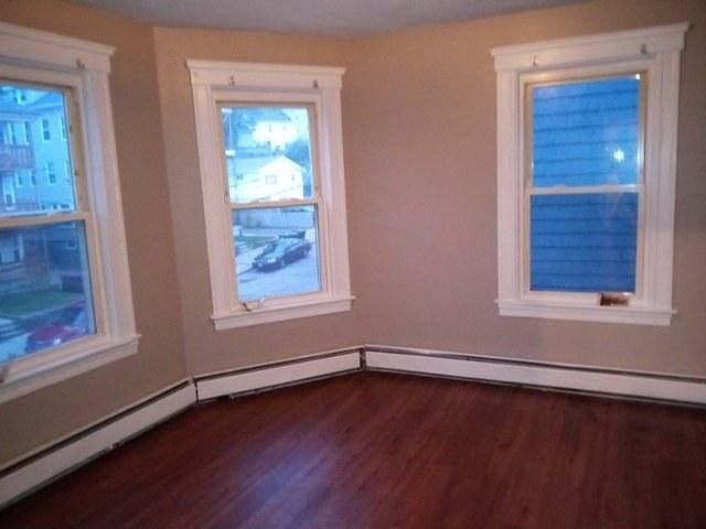 Two bed, one bath on 2nd floor with energy efficient windows and gas baseboard heat, this unit is rent ready with new paint, hardwoods, two private decks, off street parking, new mini blinds and coin-ops in the basement. Successful applicant will need $4500/mo of documented income, positive and stable rental history and clean criminal background, as well as first/security. Applications are $50/family Month to Month
