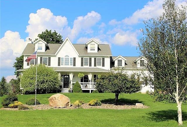 Driving to your new home you and your guest will first be welcomed by a quiet country road lined with mature trees and scenic neighboring properties. As you first approach your new home you may first notice how it is handsomely set up high in a private park like setting. Walking to your front door you will be greeted by an elegant covered rocking chair front porch. Entering you will be swept away by the two story entry, gleaming wood floors, and sun-drenched rooms. The living rm is a perfect place for entertaining family and friends, it includes an open floor plan, beautiful fireplace, and offers plenty of windows for natural lighting. The updated eat-in-kitchen offers plenty of cabinets, granite cabinets and sliding glass doors that lead to your fabulous outdoor living space. The second level of your new home offers a luxurious master suite, plus 3 guest bedrooms, guest bathroom plus bonus/rec rm. or 5th bedroom. This home also includes 3 car garage, full basement, pond+stream+ SMM