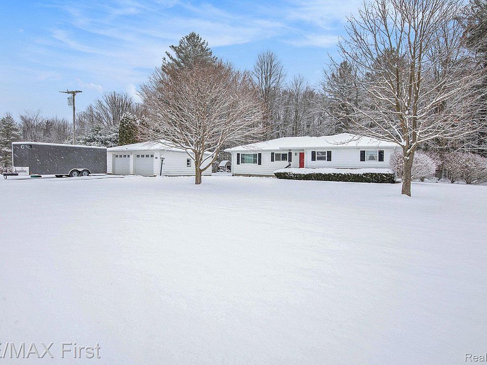 WRITE AN OFFER!! Nestled on over 16 acres of breathtaking land, this 3-bedroom ranch offers the perfect blend of comfort and serenity. Step inside to an open-concept layout featuring brand-new carpet, recessed lighting, and a beautifully designed kitchen equipped with stainless steel appliances, an island, ample counter space, and stunning cabinetry. The spacious master bedroom boasts a double closet and a private half-bath, while the additional bedrooms provide flexibility for family, guests, or a home office. The living room, with its generous size, is ideal for entertaining, while the cozy family room invites relaxation and quiet evenings. Outside, two gorgeous cherry trees grace the front yard, adding charm and natural beauty to the property. The expansive back deck is the perfect spot to enjoy your morning coffee while gazing at the woods, which connect to state-owned forest land. Wildlife enthusiasts will delight in the abundance of deer, turkey, and birds that call this area home. Whether you're seeking peace, space, or a connection to nature, this property has it all. Schedule your private showing today and experience the tranquility for yourself! John Deere tractor negotiable, firewood stays, shed in the rear. Heat pump not working. Sold as-is. Shelving in bedroom not included.