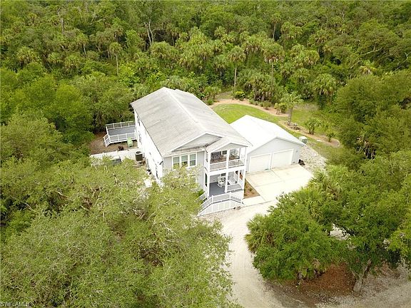 House was built under Hurricane Andrews standards. Orange River crosses the property. 30 acres on one side and 8 acres that could potentially be sold separately on the other side of Orange River (Need to perform due diligence to confirm) House is equipped with 1,000-gallon Generator and Well; in event of disaster, generator provides a full week of electricity plus gas available for cooking. No elevator but buyer can install one as owner originally planned to install one so shaft shell is built in. Second building with possible 3 horse stalls, barn with overhead doors housing the tractor and second floor under Air: home office, painting studio or full guest suite with full-kitchen and bath in MLS Living area Sq ft. Private Pond with plenty of fish, trails through the property reaching Orange River. Built private shooting range. Perfect for families who enjoy outdoor activities, nature, wildlife and just stay off the grid. Private road to property with circular driveway. Spacious 2-car Garage with plenty of room for storage. Perfect also for Hog Hunters & wildlife lovers. Extreme Privacy guaranteed!