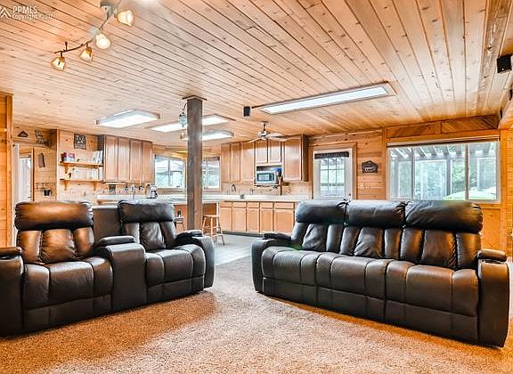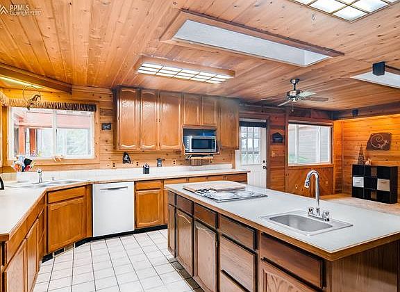 Stunning & move in ready w/ new carpet throughout! Interior finished w/ gorgeous details to charm the most stoic guest! Beamed ceilings, skylights, custom cedar ceilings, walls and trim give incredible ambiance to open plan! Main level w/ walk outs from dining and family room! Kitchen has huge center island w/ hand sink! Plus ample cabinetry w/ pulls outs! Master walks out to balcony! Amazing rear lawn w/ water feature, sand box, raised garden beds on drip system & much more! Custom touches too numerous to list! Come see! Finished basement with gorgeous, easy to clean wood laminate! Plumbed for refrigerator or wet bar! Mature garden including raspberry bushes in front w/ harvest twice yearly! This charming home in welcoming neighborhood is a rare find! Don't miss your chance! Come see!