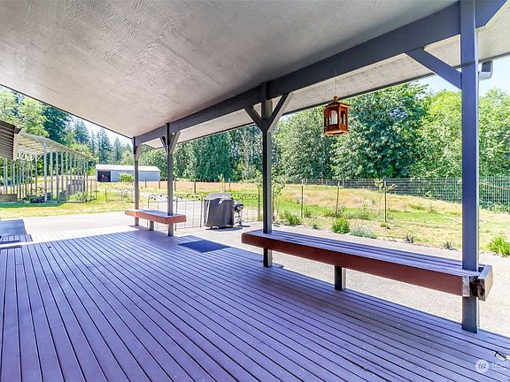Equestrian retreat on over 9 acres of rolling pasture & woodlands offer privacy and serenity while still being close to amenities. Enjoy sitting on your covered front deck overlooking perennial gardens and territorial views. Fully covered large entry deck offers a great place to enjoy meals and entertain. 6 stall barn for your horses including a tack room as well as 2 large detached RV carports. Kitchen outfitted with newer stainless steel appliances. New woodburning stove keeps you cozy on cold winter nights or use your mini-split heat pump for convenience and comfort. Huge primary bedroom has ensuite bath, shower and double vanity along with sitting area and beautiful views toward the water and Mount Rainier. Live the Dream!
