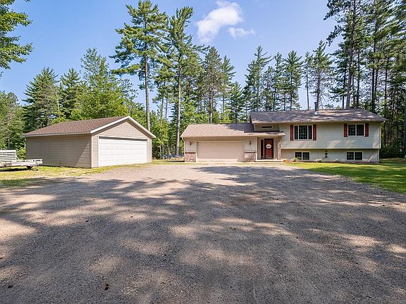 Nestled on 4.25 acres of stunning Red and White Pines in the serene location of Pine Lake, this 3-bedroom, 2-bathroom bi-level style home was built in 2013, providing a tranquil and private escape just moments away from Rhinelander. Boasting 2,100 square feet of living space, this home showcases an open concept layout perfect for entertaining. The living room features a charming fieldstone woodburning fireplace, creating a cozy ambiance during winter nights, while the kitchen is adorned with stainless steel appliances, a modern backsplash, and a center island with rustic wood accents. The finished lower level includes a spacious family room, office, a second bathroom, and a third bedroom. The property also includes a 2-car attached garage and a 30x24 detached garage. The home and garage have had a new roof installed this year. Surrounded by wooded privacy and expansive open spaces, this property is certain to impress. The Listing Agent is also the Seller.