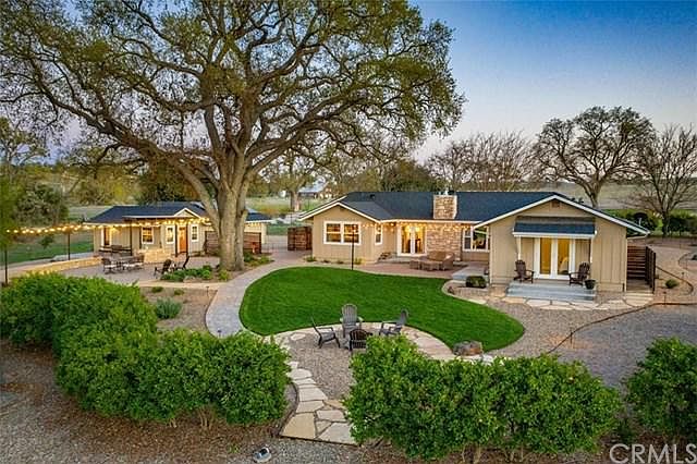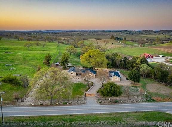 A Slice Of Heaven in Templeton! Welcome to the heart of wine country, where youll find this ultimate farmhouse with guest cottage on 10 beautiful acres. The charming 3 bedroom/1.75 bath home provides the perfect layout: a spacious living area with rock fireplace, dining area with built-ins & plenty of natural light, kitchen with numerous updates including walk-in pantry, solid surface counters, stainless appliances & even a country sink! The list of upgrades continues with gorgeous oak flooring, hand-troweled interior walls, newer windows and heating/air system, renovated bathrooms with tons of character, and a wonderful master suite addition with vaulted wood ceiling & private patio access. The 350sf detached guest studio provides a custom built-in bed & storage, 3/4 bath, kitchenette & living area. This property is ideally set up to enjoy outdoor living with a grand oak tree for shade, professional landscaping including multiple patios, decorative rock walls, water feature, covered outdoor kitchen island, and exterior accent lighting. Your guests won't want to leave! For all your toys & hobbies, there's an attached 2 car garage PLUS a detached 3 car garage. Additionally, there's an outdoor shower, fenced pastures, pen for small animals/4H projects, views, privacy, and the amazing seasonal Corkscrew Creek that borders most of the property. Find serenity on this truly special property; its the perfect place to build memories with your family & friends!