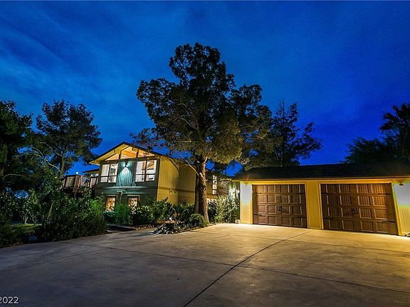 REDUCED FOR IMMEDIATE SALE! NO HOA! Private well, RV/Boat Parking, Equestrian zoning qualified, on a 1+Acre corner Lot, w/access to the property from two streets. Fully fenced, w/4 wood gates, Dog run, Detached 2 Car Garage converted Workshop that includes 3/4 bathroom & workroom. Much sought after 89149 ZIP CODE! Lodge style house in the Valley! Split Level Floor Plan, Lower level reinforced concrete block solid construction, 4 Bedrooms, 4 Bathrooms, 1 Den w/ Attached 3/4 Bathroom,Vaulted oak ceilings, 2 wood burning fireplaces. Large dining room which opens to elevated redwood deck w/ stunning Strip and Mountain views. Downstairs has complete wet bar entertainment area. Exterior Remodeled including new Roofing on 2x6 solid Cedar Lumber, Stucco, Windows, Pine Doors, Paint, Stonework, & Deck. Well Equipment completely upgraded in 2017. Garden irrigation system. Fruit Trees. Quiet street w/low traffic. Easy access to Freeway, Shopping, Schools, & Parks! Schedule your showing TODAY.