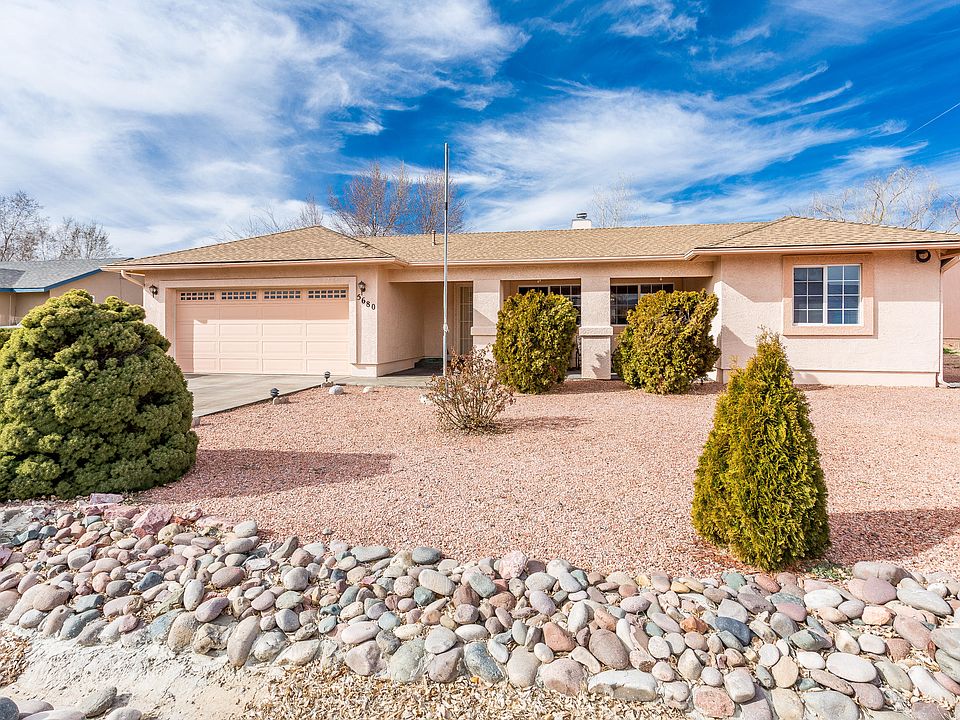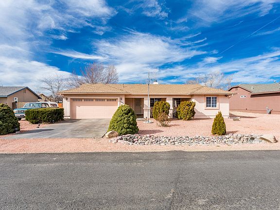 Come take a look at this charming home in a quiet neighborhood. This single-family home features an open floor plan with a great room and eat in kitchen with plenty of storage and counter space. The large window in the kitchen brings in a ton of natural light. A master suite and 2 guest bedrooms gives plenty of room for family, friends, or hobbies. There is tile in the main living areas and carpet in the bedrooms. Both front and backyards have low maintenance landscaping and a two car garage. Close to shopping and everything Prescott Valley has to offer.