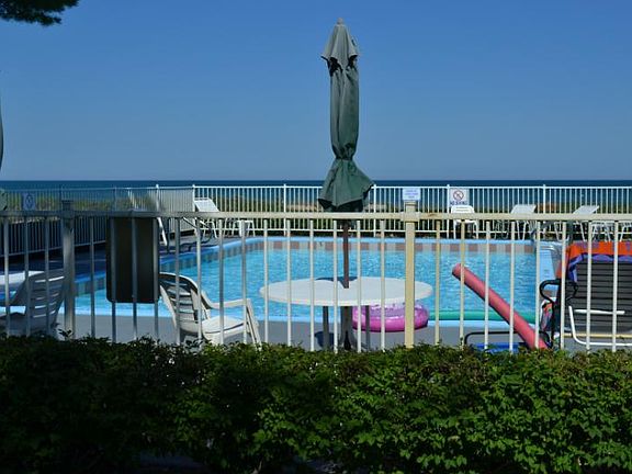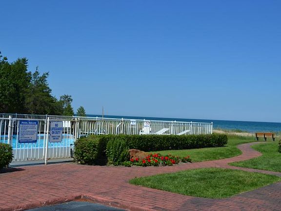 Lake HuronPineridge Bay CondominiumsSuperb location Upper End UnitEnjoy living on Lake Huron in this totally updated unique unit, 2 bedrooms, 2 bath unit with hardwood flooring thru out, Modern kitchen with newer appliances, plenty of cabinets and counter space, curved breakfast bar separates the kitchen & dining area, Bay window in dining area, Open floor plan with vaulted ceiling's and large windows gives you a Lakefront view from every room except the front bedroom, Master suite has built in shelving along with a window bench seat, vaulted ceiling, His and Hers closets, fabulous master bath, jet tub, double sinks with ample storage area below, Large front bedroom, Second bathroom has a tiled shower, bowl sink on vanity, tile flooring. You will have a 7 x 7 back porch with a 9 x 10 balcony over looking Lake Huron. Beautifully landscaped grounds, HEATED POOL ( for those cooler days when you don't want to jump in the lake) Association Dues $235.00 MO. which includes: pool maintenance, lawn maintenance, garbage removal, snow plowing, elevator maintenance. Don't miss the opportunity to own this unique upper end lakefront unit Just unlock the the door when you come and lock it when you leaveEASY "UP NORTH" living.