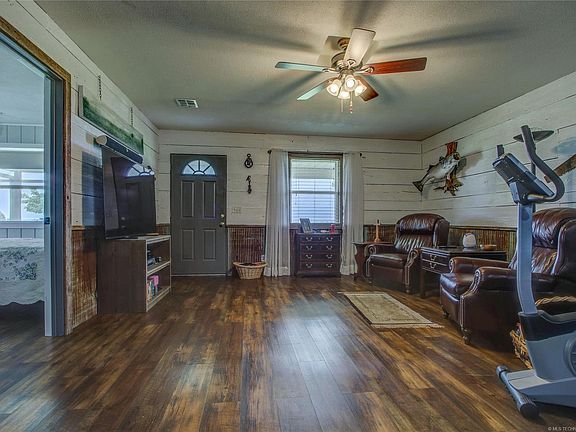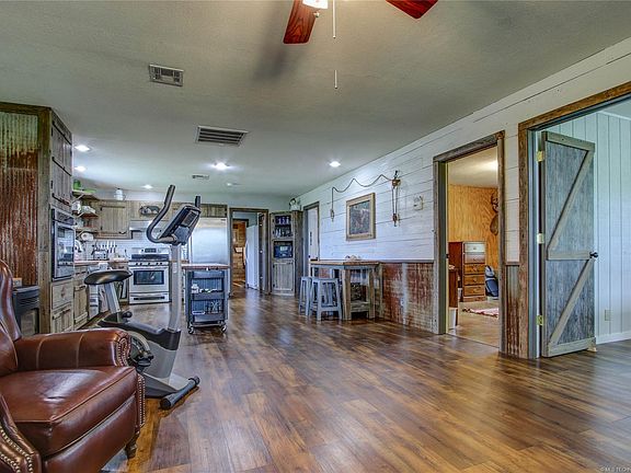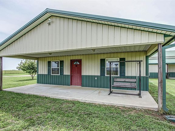 Here's your chance for a 3 in 1 horse property! 36x100 wood frame structure, metal siding and roof. 36x50 4 stall horse barn with tack room and hay storage, concrete floored shop w 3 overhead doors & in ground storm shelter & a cute 1500sqft 2 bed/ 2 bath home that has an office that could be used as a bedroom all under ONE roof. You can even check on the horses from a hidden window in the master bath! 4 paddocks, one pond and loafing shed. 100x200 riding arena w lights. Close to Lake Oolagah.