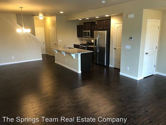LIKE NEW Immaculate 3 bedroom town home w/ mountain views - LIKE NEW Immaculate 3 bedroom town home w/ mountain views & convenient location to military bases and the best Springs shopping. The home has wood floors throughout the main level and a stacked stone gas fireplace. The kitchen has granite counters, upgraded stainless steel appliances, dark cabinets, recessed lighting, huge island with counter seating, pantry, and wood floors. The Master Bedroom has attached spa like four piece bath with tile floors and granite counter tops, large walk-in closet and a double sink vanity. The upper level also features two additional good sized bedrooms and a full bath. The town home has an attached two car garage, air conditioning, upgraded lighting throughout, and tons of upgrades. **No cats, small dog(s) subject to approval and additional deposit** This is a Drug and Smoke free home. For showing information email: leasing@thespringsteam.com No Cats Allowed (RLNE4307774)