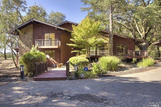 Big Southwesterly views abound from this private setting. Custom built w/desirable floor-plan (split level)and vaulted ceilings showcasing generous room sizes and details. 2-story fireplace that serves living & family rooms. Large wrap around deck with hot tub positioned for big views. Newly re-finished hardwood floors, new carpeting and paint throughout. PLUS 8 car garage (yes, that's right!) w/office & shop w/kitchen & Bath