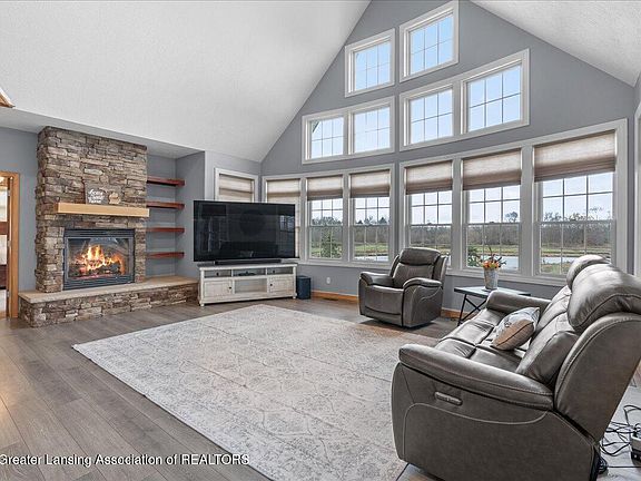 Welcome to 5681 Ladderback, a luxurious retreat in Holt, MI. This executive-style home features an open floor plan flooded with light from stunning 30-foot windows in the great room, offering panoramic views of the pond, woods, and farmland.