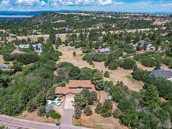 *Original owners, well-loved, 2-story home in Happy Canyon* Come check out the many possibilities of living in this traditional 4 bdrm, 2.5 bath, w/finished basement home on 1.75 acres. Some updates in the last few years; 1 yr old exterior siding, remodeled kitchen with custom light maple cabinets, 5-burner counter-top gas range, quartz counters, wall oven & built-in microwave. Enjoy watching from the bay window in the eat-in kitchen, a variety of birds, plus an entertaining squirrel family. Vinyl clad windows 13 years old. Enjoy the gas fireplace in family room which adjoins the kitchen. Enter the basement & you've stepped into the 70's & a retro-entertainment room including a bar with built-in stools. Find additional storage & large laundry area in basement. Attached 2-car garage plus added heated workshop or artist studio plus more storage. Additional parking near garage. The sellers are gardeners & grew fresh vegetables & beautiful flowers in a elk-fenced area, housing 2 hoop style greenhouses & planter boxes. Drip irrigation to garden and greenhouses. The garden was not planted this summer; however, it's ready to plant. Underground sprinklers to backyard and drip irrigation to some flower beds in front. The heat and dry winter affected the blooms, see photos. Room for outdoor dinning on covered front porch facing east, nice open patio in back facing mountains. The pines & scrub oaks cover hillside to the west of the home. A little ways down the back hillside is wildflower meadow. This is a one-of-a-kind neighborhood near Castle Rock. Come prepared to live in nature; families of deer, turkeys and bear are frequently seen throughout the canyon.