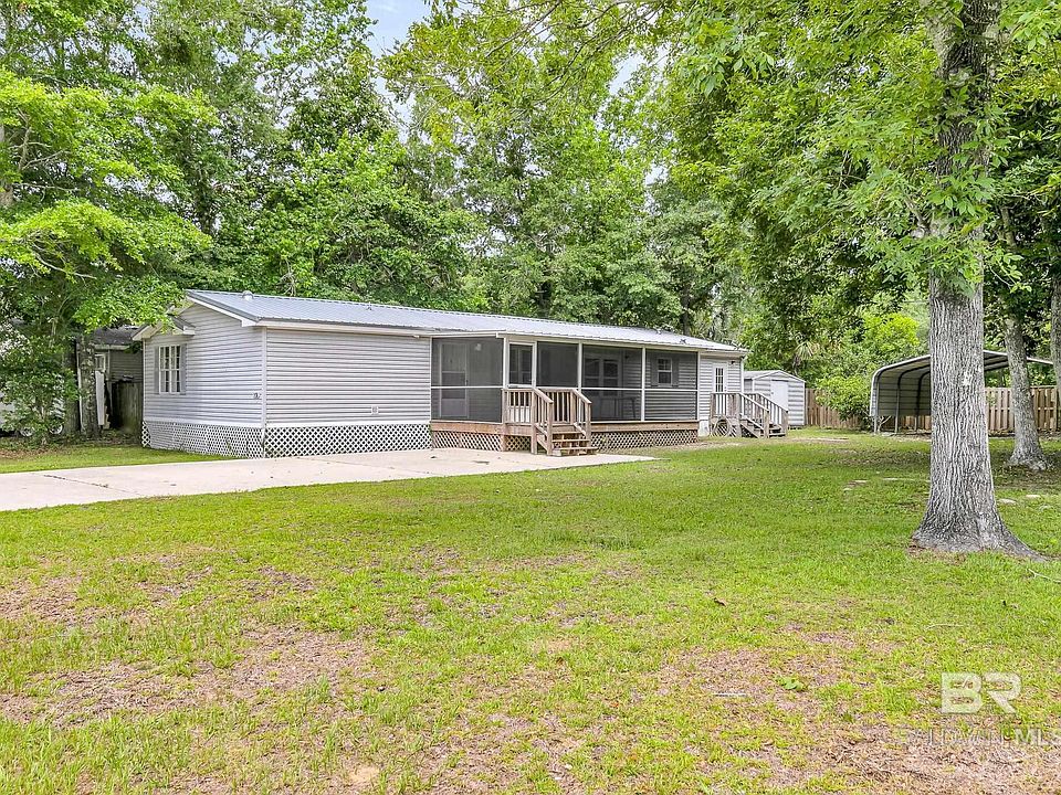 Great location in Gulf Shores! This 3 bedroom 2 bath home is the first home in River Palms Subdivision and is located on a double lot! There is room for entertaining and the lot has a nice gazebo, perfect for a hammock or picnic table for additional friends and guest to relax. A carport is also on the extra lot perfect for storing the boat or other water toys. The storage building next to the home has power and lights ready for a small workshop or a She Shed! Take advantage of the massive covered, screened in porch for those rainy days. The home has a split floorplan with a nice sized living room and dining combo. The HVAC was replaced in 2022 and the roof was replaced in 2021! No HOA and only minutes from Gulf Shores and Bon Secour River! All information deemed important to be verified by buyer or buyer's agent. Buyer to verify all information during due diligence.