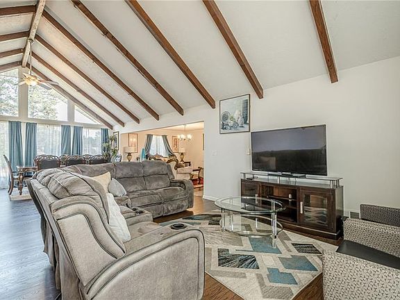 THIS BEAUTIFUL ONE-OF-A-KIND HOME WITH VALUTED CEILINGS & RUSTIC EXPOSED BEAMS IS BACK ON THE MARKET (THROUGH NO FAULT OF SELLER) AND IS YOUR OPPORTUNITY TO GET IN BEFORE THE SPRING! THIS CLASSIC A FRAME STYLE HOME, HAS OVER 4200 SQUARE FEET OF LIVING SPACE WITH FIVE BEDROOMS ON ONE LEVEL! GORGEOUS VAULTED FAMILY ROOM WITH EXPOSED BEAMS & SOARING 'REAL' STONE WOOD BURNING FIREPLACE; OVERSIZED PICTURE WINDOWS; FAMILY ROOM IS OPEN TO LARGE DINING ROOM W/ADDITIONAL LIVING/SITTING AREA. EAT IN KITCHEN OFFERS UPDATED STAINED CABINETS, STONE COUNTERS, ISLAND AND NEWER APPLIANCES; LARGE LAUNDRY ROOM AND UPDATED HALF BATH OFF KITCHEN; OVERSIZED PRIMARY SUITE W/HIS & HER CLOSETS; ENSUITE BATH W/UPDATED DOUBLE VANITIES & SEP TUB & SHOWER. FOUR ADDITIONAL LARGE BEDROOMS AND FULL BATH ON MAIN WITH NEWER DOUBLE VANITY AND TUB/SHOWER COMBO. LARGE, FULL (& PARTIALLY FINISHED) BASEMENT, STUBBED FOR A BATH AND HAS A STONE FIREPLACE JUST BELOW MAIN LEVEL FIREPLACE THAT CAN BE OPENED UP. POTENTIAL IN-LAW SUITE OR APARTMENT COULD BE USED FOR GENERATING ADDITIONAL INCOME OR PERFECT FOR MULTI GENERATIONAL FAMILIES. NO RENT RESTRICTIONS! THIRD GARAGE BAY/BOAT DOOR OFF BASEMENT LEVEL W/PATIO AREA. HUGE LEVEL CORNER LOT WITH PRIVATE BACK YARD AND DECK OFF MAIN LIVING AREA. MOST RECENT UPDATES DONE IN 2020 INCLUDED: 2 NEW AC UNITS, NEW CARPET, NEW APPLIANCES, NEW BATHROOM VANITIES & FAUCETS, NEW MIRRORS & LIGHTING, NEW GARAGE DOORS AND NEW DRIVEWAY. ROOF INSPECTED AND SEPTIC TANK RECENTLY INPSECTED AND CLEANED. EXCELLENT LOCATION AND CONVENIENT TO SHOPPING, RESTAURANTS, SCHOOLS AND EASY ACCESS TO 85. DONT MISS THIS GREAT OPPORTUNITY! HOME IS OCCUPIED.