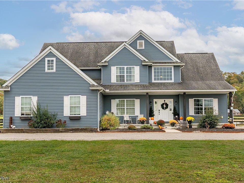 Nestled on 3 peaceful acres, this newly Amish-built 3-bedroom, 2.5-bath home combines modern luxury with country charm. Offering 2,850 sq ft of open-concept living space—plus a partially finished basement—in the desirable Ridgewood School District, it features vaulted ceilings, a stunning 17-foot stone fireplace, a stylish kitchen, a spacious primary suite with dual walk-in closets, and convenient first-floor laundry. The basement provides extra room for a gym, media area, or additional living space, while outside, the beautiful patio overlooks ample space to roam, garden, or add a pool. A 32x48 heated garage, built in 2019, includes a wash bay drain, heated floors, and 240-amp power—completing this move-in-ready home surrounded by quiet, scenic views.