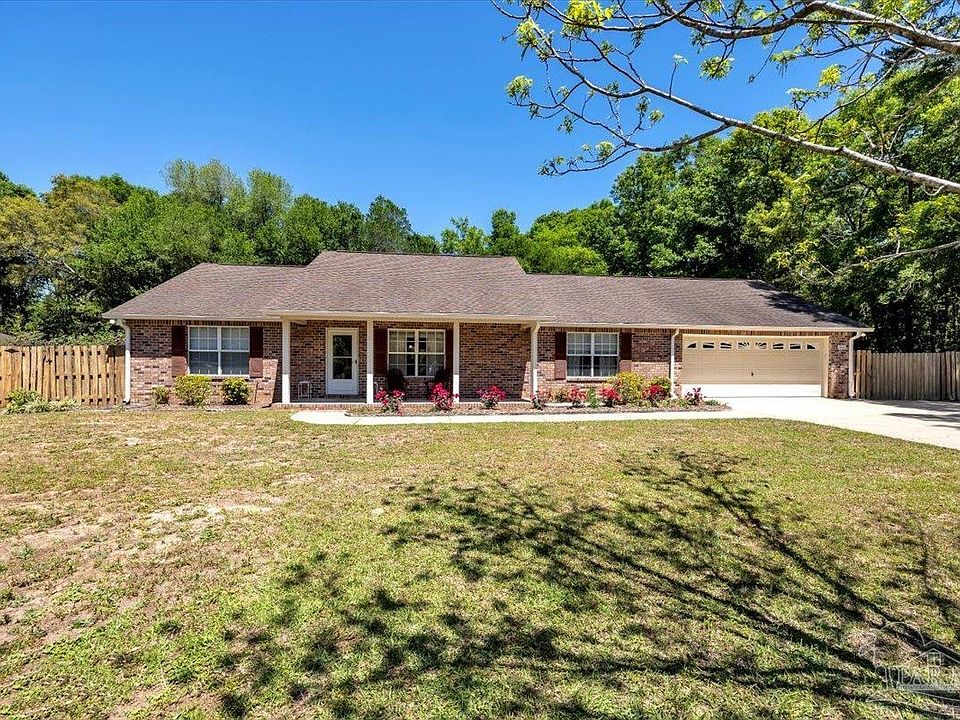 CUSTOM ONE OWNER HOME IN THE HEART OF MILTON...Close to everything...Schools, shopping and hospital. This is a well maintained home starting from the outside featuring loaded blueberry bushes, mature pecan tree, fig tress, bottle brush to entice the hummingbirds and butterflies. This is a paradise in your back yard!! Whether sitting under the covered patio enjoying nature or from the cooled Florida Room overlooking this wonderful space. This home has 3 very large bedrooms with large closets for lots of storage. The kitchen has granite countertops, tiled backsplash, updated fixtures, stainless appliances, pantry and breakfast bar. The laundry room is large and has cabinets and plenty of space to get your laundry sorted. The oversized garage has a deep sink and workspace with some shelving. Not only is this garage oversized it has a full bath for those who love working in the yard and wants the keep the dirt outside the well maintained home. The large Great Room has a gas fireplace and lots of natural light. This is a split bedroom plan. The master bath has a water closet, double vanity, jetted soaking tub, separate shower and 2 closets. The master has a trey ceiling and enough room to situate most large furniture. Blinds throughout home and all window treatments stay along with bar stools, patio furniture and front porch chairs where you are able to enjoy the knockout roses, wisteria and a fresh cup of coffee. The owners have installed a leaf filter gutter system in 2021, Whole house Generac installed in 2020, The A/C was installed in 2022 and is serviced twice a year. There is a Double Car Carport in back yard to cover your valuables from the elements and utility shed. Ceiling Fans throughout home and this home is Good Cents Certified. Currently the home has a termite bond. Surrounding this beautiful home is a newly installed front picket fence in 2022 and Privacy Fenced yard in the back. Make your appointment today to see this beautiful home.