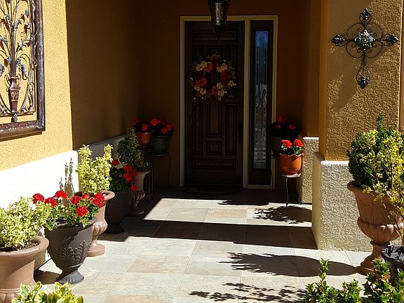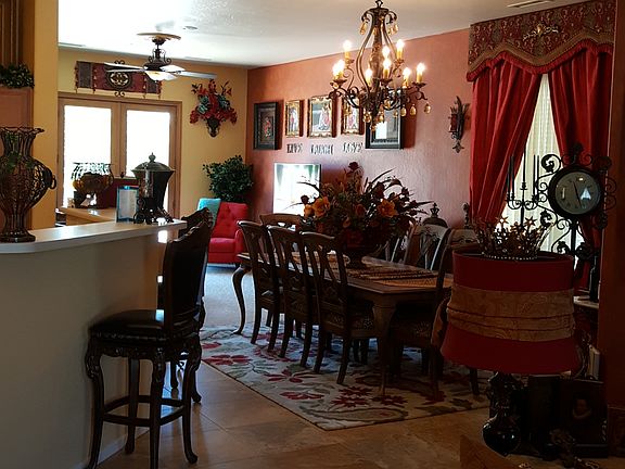 Gorgeous Granville home; move-in ready. Home is on extral-large, corner culdesac lot with double-gate entrance in the back from street, and 5th wheel dumping station. This beautiful home features an impressive architectural addition which adds to the spacious floor plan. There are 10 foot ceilings throughout, designer ceiling fans, lighting and chandelier. Upgraded lighting on the outside and fresh paint. A spetacular fountain in the front of the house sets off the unique landscaping. Beautiful tile entry coming into home. Custom blinds, window coverings accent the faux painting in the home. 20x20 tile throughout and designer sculpted carpet. Upgraded appliances in kitchen with gas range and oven; large breakfast bar. A gas fireplace is a focal point in the living room. Master closet is exceptionally large and bathroom has garden tub with generous tile surround. French doors open from family room onto flagstone patio. Area for graden in backyard. Home is short distance from clubhouse, playground and dog parks.