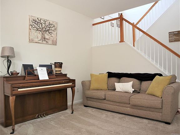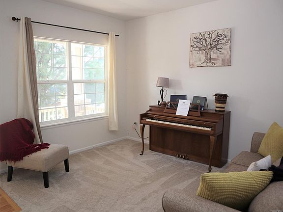 Greet family and friends or relax and enjoy the covered front porch. Formal living room upon entry is light and bright. Kitchen has lots of cabinet and countertop space, island, and a pantry. Eat in kitchen area with hardwood floors overlooks the back deck and yard with mature landscaping which is both scenic and private. Large family room with fireplace connects kitchen and dining spaces. 1/2 bath on main level. Newer carpet throughout. All bedrooms on upper level. Master bedroom has large garden style tub, double sink vanity, walk in shower, and adjoining large walk in closet. Upstairs also has a large bonus/flex/office/studio/loft/retreat/play area. Unfinished basement has plumbing roughed in and finishing potential. Central A/C. Full size washer/dryer. Oversize 2 car attached garage. Cherry Creek Schools. Just a few minutes drive to Southlands & E-470.