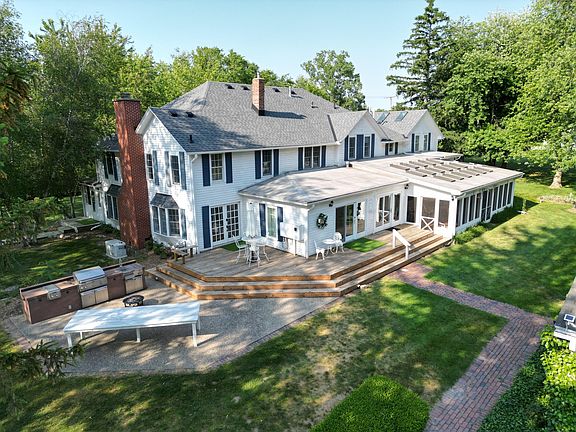 Unveiling Historic Charm & Modern Luxury: Discover this 7,437 sq. ft. farmhouse masterpiece on 3.10 acres. This estate, boasting 8 bedrooms, 6.5 baths, and a 3-car garage, seamlessly blends historical elegance with modern sophistication. Features include 3 fireplaces, a grand family room with cathedral ceilings, a vibrant cutting garden, vineyard vines, and a blueberry patch. The updated kitchen, expansive patios, outdoor kitchen, and large deck enhance this haven. A pole barn adds utility and charm. Nestled just a stroll down the street from downtown Sawyer, this property is perfect for serene living or as an investor-friendly short-term rental. Now offered at an exceptional value, it's the epitome of sophisticated living.