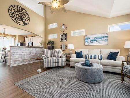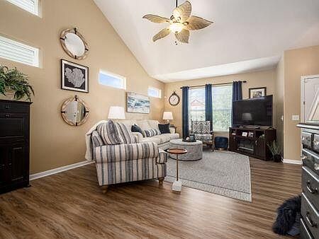 Welcome to this beautiful well maintained one owner home. Enter through the front door to the living room with newer flooring and vaulted ceiling. The open floor plan leads to the spacious eat in kitchen area featuring newer gray stainless appliances including double oven. This home boasts a first floor primary bedroom with walk-in closet and laundry. The second floor loft adds additional space for an office/flex space. Enjoy a peaceful walk around the neighborhood or sit overlooking the well manicured lawn, pond and gazebo. Close to shopping, restaurants and freeway access.