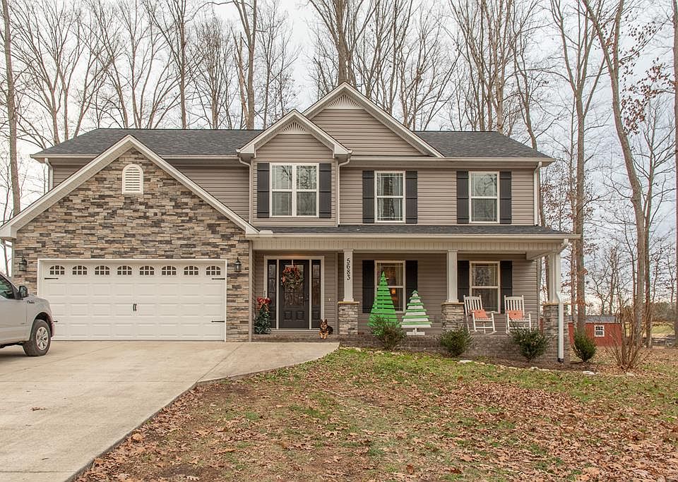 You may have seen this lovely design before, but not on such a perfect lot as this! The longer, concrete drive leads you back through mature trees to this beautiful home providing easier access onto Ditty Road, and extra privacy with the trees. You'll love the open concept, granite counters, and a mix of carpet, tile, and hardwood flooring. The kitchen is a great space for cooking and features a granite bar top with seating that serves as a great homework spot. This home features one bedroom on the main floor, and an additional 3 upstairs where the laundry room is located for easy access. The upper level also includes a closeted area at the top landing of the stairs that is a great space for TV/game area or even an office space. The master on the upper level boasts a large ensuite bath including a jetted tub, walk in shower, and continues with more granite counters. The back porch is screened in for long summer nights to relax or entertain while watching the kids play in the fenced in backyard.