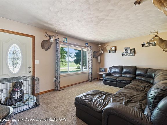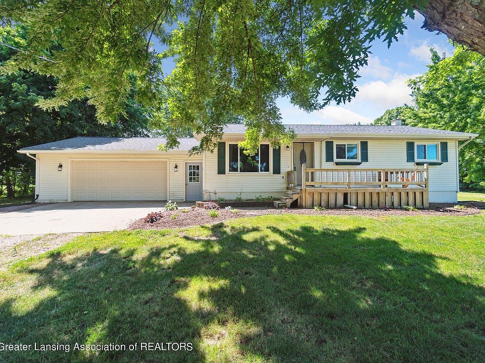 Here's your opportunity to enjoy peaceful county living at its best! This 3 bedroom ranch home on a 1.4 acre lot is in St Johns School District, but Ovid-Elsie Schools is also an option. The spacious living room has a nice picture window, the kitchen has tons of oak cabinetry, and the open dining area has sliders to a back deck. You'll appreciate the nicely updated bathroom, the large partially finished family room in the full basement, and the attached 2 car garage. The 24 x 40 pole barn is equipped with water, 220 electricity, 3 doors (including a tall slider for an RV), and a concrete floor that is plumbed for in-floor heat (just add a water heater). Additional amenities here include a generator, updated electrical system, several beautiful mature trees, and a large open back yard.