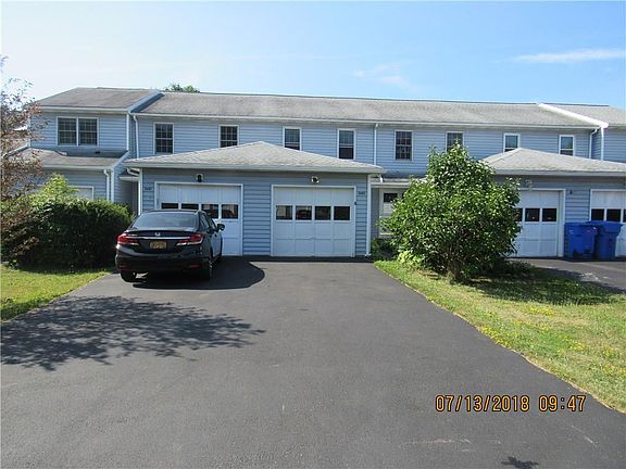 Townhouse with NO HOA FEE!!! This 2 bedroom, 1.5 bath townhouse is move in ready. It features an open floor plan with wood burning fireplace, sliding glass doors lead to the freshly painted deck with privacy fence and accent lighting with a deep yard for the kids or pets to enjoy, a finished basement area with laundry with custom cabinet, second floor features 2 large bedrooms with plenty of closet space. 1 car garage with newer garage door, plus additional spot for parking in the recently sealed and top coated driveway. Appliances included (Stove, refrigerator, washer, dryer) All this with easy access to the NYS Thruway and East View Mall. Come take a look and see this beautiful opportunity. Priced to sell.