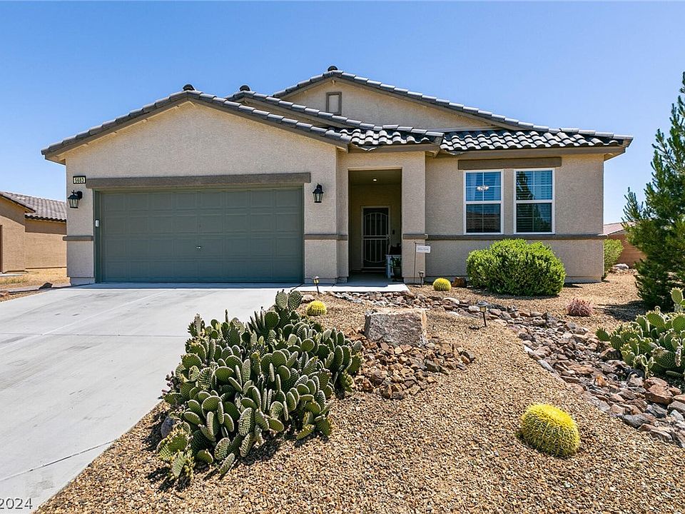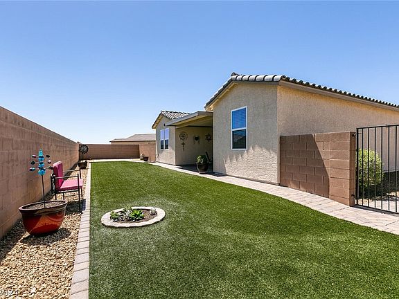 Absolutely pristine lightly lived in 4 bedroom home in Pahrump Community! Neutral tasteful color palette with natural light and airy open feeling popular floorplan. Enjoy the tranquility of the mountains from your backyard view in oversized lot. Finished backyard with turf, pavers, and patio cover. Gorgeous Low Maintenance front on sprinkler systems. Next door neighbor has pie shaped lot, lots of room, and you can add space for RV, just move the fence forward! All windows have blinds, upgraded floors, tastefully chosen light fixtures, and pendant lights over kitchen island. Soft water system and all appliances are included in the sale! Huge primary bedroom with walk in closet and adjoining bathroom with new showerhead, gorgeous sliding barn door, raised counters and toilets. Pahrump has its own winery, seniors center, hospital, golf courses, casinos and social events! Welcome home, this is a gem!