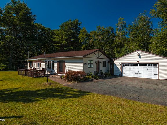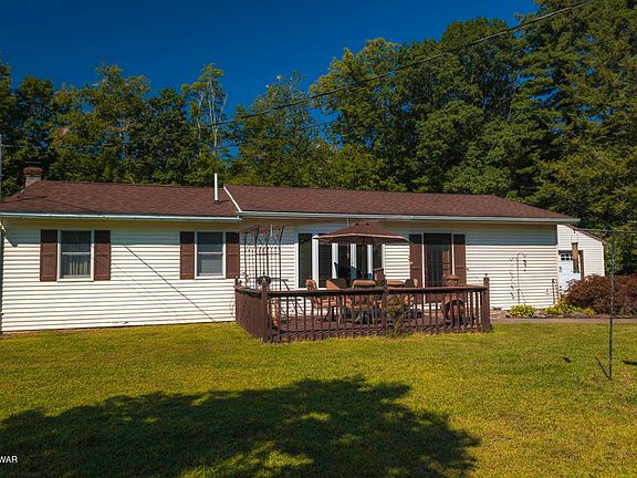 Waterfront, Contemporary Ranch! This home boasts an open concept kitchen, dining & living room w/ cathedral ceiling & oak floors, enclosed rear porch with picturesque views of the back yard, 3 bedrooms and a full bath. The basement is finished with a large multipurpose room, den and full bathroom. Also a 2+ car garage w/ a work bench, overhead winch and FHA oil heat. Enjoy this beautiful property from the front deck, rear patio or best of all, enjoy the 12x12 screened sitting area overlooking the Ten Mile River. The Ten Mile River is a NYS trout stocked stream. Set on 2+ acres of mostly open lawn with stone walls and mature trees bordering the property. Sale includes a back up generator, 4 canoes with trailer, life jackets, paddles and a riding lawn mower.