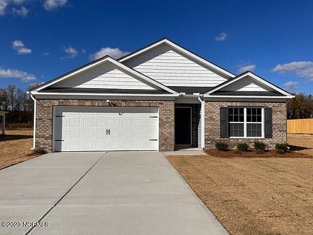 Welcome to Hunter's Crossing! The Cali floorplan is one level living at its finest. This ranch style home on a large lot offers 4 bedrooms, 2 baths and an open floorplan. The kitchen is highlighted by Cane Sugar white cabinets, Majestic White Granite countertops and a large kitchen island that opens to the dining area and family room. Off the primary bedroom, you will find a spacious primary bath with 5-foot shower, quartz countertops and large walk-in closet. Overlook your huge back yard as you relax under your covered patio! Our homes are built with quality materials and workmanship throughout, and superior attention to detail - Plus a 10-year structural warranty! Your new home also includes our Smart Home technology package! Your Smart Home is equipped with technology that includes the following: Alarm App, 1 Qolsys IQ touch screen panel, Honeywell Z-wave thermostat(s), 1 Amazon Echo Pop, Kwikset Smartcode 620 Deadbolt on front door, 1 Deako Smart Switch and 1 video doorbell on front door. Colors and options may vary.