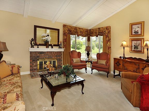 Welcome to this beautifully appointed 4 bedroom 3 bathroom home primely situated in the heart of Yorba Linda. Spanning 2,484 sq. ft. on a generous 8,100 sq. ft. lot, this property offers a perfect blend of comfort combined with traditional elegance. As you enter, you’re greeted by a spacious formal living room featuring vaulted beamed ceilings, custom etched windows and a cozy fireplace with custom mantel which seamlessly flows into the formal dining room. The charming kitchen is pristinely maintained with rich wood cabinetry, sparkling white tile counters, stainless steel dishwasher and refrigerator, recessed lighting, a walk in pantry and a delightful eat in kitchen area which overlooks the private backyard. Down a few steps you'll find a separate family room with fire place, wet bar and patio slider with backyard access. There is also a spacious downstairs bedroom and a full bath, perfect for guests or multi-generational living as well as an interior laundry room with additional storage. Head upstairs and discover the enviable primary suite with vaulted ceilings, dual closets, and a bright and luxurious bathroom with an oversized soaking tub, walk-in shower, and dual vanities. Two additional bedrooms share a secondary bathroom equipped with dual sinks. Step outside to your private backyard with ample space for entertaining! There is a large grassy area, a built in BBQ, lush landscape and plenty of room to dine al fresco under the a new patio cover. Completing the exterior is a spacious side yard with RV potential. Additional improvements include newer exterior paint, upgraded windows throughout, plantation shutters, custom baseboards, newer air conditioning, heating, and water heater. This home is zoned for prestigious award winning schools, and is conveniently located near shops, entertainment, and easy access to the 91 and 241 freeways. Don’t miss this incredible opportunity to own a remarkable home in the land of gracious living!