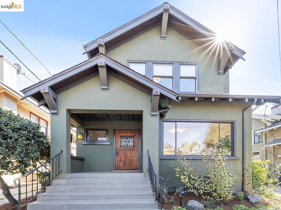 Classic Rockridge Craftsman era home from the front porch thru its gorgeous oak floors w/inlays to the verdant garden yard & multi-purpose detached structure - future ADU? Built in 1911, it hosts iconic period picture rail molding, built-in lead glass adorned cabinets, box beams, 2 fireplaces & a multi-pane glass pocket door to define the home's character. Off the entry foyer is the spacious light filled living room centered around a brick fireplace flanked by built in cabinets. Entertain in expansive great room or close pocket doors for private eating in the formal dining room, adjacent an eat-in kitchen & 1/2 bath. A gracious wood stairwell takes you to the sleeping quarters w/3 good sized bedrooms, a full bath & a bonus room/office. Multiple outdoor spaces include a trellis covered "family room" off a well proportioned private yard w/lush lawn, stone patio, lemon & persimmon trees. The large corner structure can accommodate an art studio, game room, home gym & shop or convert to an ADU. Sited on a level lot near vibrant College Ave shops/diverse restaurants, annual street fairs, BART, bus/carpool transit to SF, UC Berk, downtown Oakland & beyond. “Paradise Walkscore” of 92 & highly acclaimed Chabot Elementary School make this an urban delight.