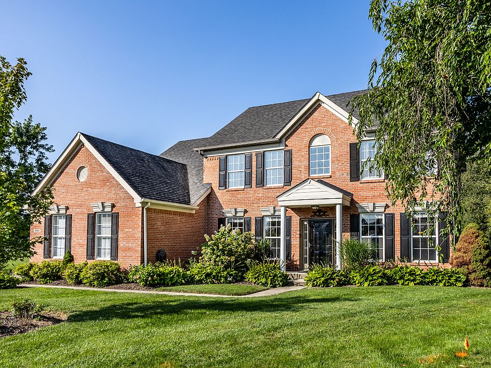 This Lakes at Hazel Dell stunner has it all! Traditional brick exterior with side-load 3-car garage plus modern updates throughout the interior. Kitchen features gorgeous quartz countertops, gas range, bkfst bar & pantry! Open into eat-in kitchen and living room with cozy gas fireplace. Host family and friends on the beautiful paver patio overlooking mature trees and green space. 4 bedrooms upstairs, plus a main floor office with French doors. Huge owner's suite with soaking tub, tiled shower and walk-in closet. That's not all! Finished basement with built in bar, full bath and fireplace. Neighborhood amenities include pool, playground. Updates: Rain Bird Irrigation system ('21), new carpet in LR, office, bmnt ('23) & much more!