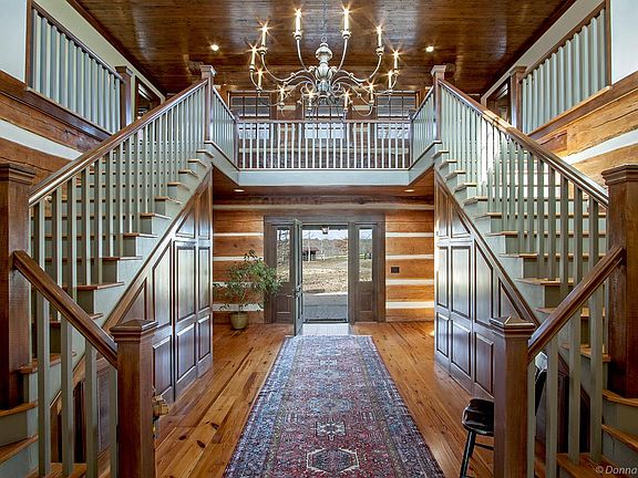 'Crestview',circa 1996.Private,gated,57 acre country estate.Expansive main residence w/barn & office,cabin,potting shed,& equip.barn.Thoroughly custom log construction w/metal roofing.Heart of pine and poplar plank flooring.Kitchen/family/bkfst open & light.Wide porches!Geothermal HVAC.Two pastures w/ponds!