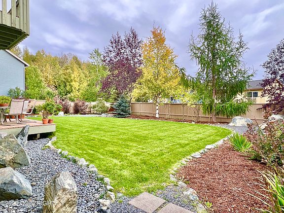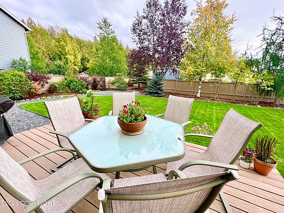 Under this winter snow pack, one of the prettiest lawns in Westpark will soon show off its vibrant colors! Perfectly positioned for southern exposure, this home is flooded w/natural light year-round.Beautifully maintained 2-story welcomes you w/a covered Trex front porch, new LVP flooring,$52K+ in new Andersen windows and Hunter Douglas motorized treatments. Open kitchen,gas range,granite,SS appl.Granite island has overhang with room for bar stool seating. Kitchen drawers are soft close. The built-in granite desk and dedicated cabinet storage is perfect for a tidy laptop work area and electronics organization. The corner pantry is larger than it looks with functional shelving that takes advantage of the usable space. The new Andersen sliding patio door is smooth! Double paned with smart glass that automatically changes its light filters by sensing temperature. In the summer, this technology helps cool the interior of the home, and on colder days, it traps heat from the natural light to save you money on heating bills. This sweet slider opens to a 160sf Trex deck and a gorgeous landscaped fenced back yard with easy care perennials and ornamentals that decorate the full perimeter of the lot. All bedrooms are upstairs. The master suite features two large walk-in closets with built-in organizers and a window in one closet. The bedroom area is spacious with a south facing private Trex deck overlooking the back yard, a cork sound absorbing wall, and a corner far infrared light wave/low heat sauna that's becoming increasingly popular in the health and wellness world. It is said to expel toxins and release stress, break down fat cells, stimulate metabolism and boost immune systems. If it's not your thing, the panels dismantle and can be moved. The bathroom has double vanities, granite counters, a jetted tub with new Andersen privacy windows, remote controlled shades and a separate water closet. All of the Hunter Douglas window coverings were installed in 2022 and include three 5" Pirouette soft touch with light filtering features, three remote controlled duo lite Silhouettes in kitchen and family room, blackout duo lite screen shades in two bedrooms and remote operated shades in the master bath. Dual battery charger w/ two spare batteries will stay and are under warranty. The house is pre-wired for surround sound in the family room and for audio in master bedroom. Other home features include a smart phone programmable thermostat, central vac system with hidden in-wall hoses, large laundry room upstairs with a folding table, storage cabinets and washer/dryer stay. Although the garage is officially a 2-car for parking, it is 738sf - same size as a 3 car garage and there's a bump out with a workbench area, lots of built-in cabinetry and space to park/store small toys, lawn and snow equipment. Plus, there's a big walk-in storage closet. Furnace and water heater were just inspected, cleaned and serviced. Driveway is freshly resurfaced as of summer 2022. Fantastic south Anchorage master planned community. Enjoy multi-use trails maintained year-round that connect to various entry points into Kincaid Park. Lighted streets, sidewalks, neighborhood lake, walking distance to multiple parks and Kincaid Elem. playground. Excellent schools and well maintained neighborhood with a reasonable HOA.