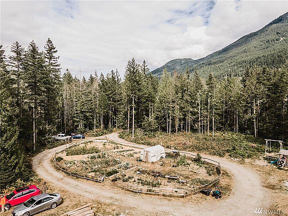 Privacy! Seclusion! Check this out. 12+ acres nestled in the trees. Very well maintained home with 36 x 28 garage/shop w/its own woodstove. Ready with a generator as back-up for the occasional power outages. The home is very nice with upgraded hardwood floors, wood stove, a great kitchen. The master bath has a garden tub and large shower. The lot is flat, level and has a large garden with established perennials and berries (asparagus, rhubarb, blueberries, thornless blackberries, ever-bearing and June bearing strawberries, grapes, and raspberries), a chicken coop with an extra storage area, a farm stand at the end of the private driveway, children’s playground, and a cleared area for an orchard. Fenced backyard with cement patio, in front there is a large wood deck to lounge on.Wood shed just outside the back door for easy access. Cleared trails throughout the wooded areas of the property to enjoy and convenient to the Powerline Road for even more room to explore. Adjacent to conservation land for additional exploration and easy access to Diobsud Creek. A parking area and 2 cleared campsites in the front corner of the property offer the benefit of seasonal income if desired, the sites were voted one of the best in Washington State through HipCamp and AirBNB. One of the few houses in Marblemount to have DSL internet through ZiplyFiber, most others rely on expensive and slow satellite internet for connection. Reliable cell service through Verizon and T-Mobile towers.