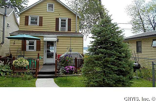 year round lakefront home, with public water and sewer. very level lakefront with large expansive views of owasco lake. wonderfull deck and seasonal room. 5 year young roof, new hot water tank. this three bedroom home is priced to sell and will not last. additionally there is a 2 car garage with a carport, and gas fireplace in the living room.