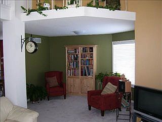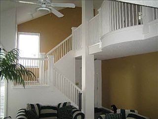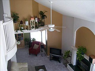 Open balcony towers above sunlit great room/dining area, updated kitchen w granite counters, ceramic backsplash, island, sep pantry & wood floors. Main laundry, daylight windows, deck, large wood fenced yard. Community Pool too!
