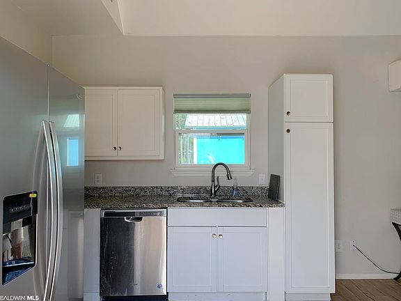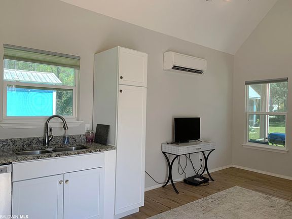Precious home located in peaceful and serene Bon Secour. It is a darling development that is condoized. Appliances are about 2 years old. Comes partially furnished. High smooth vaulted ceiling in the living kitchen area. 9' smooth ceilings everywhere else. Beautiful tile hardwood floors throughout. Home comes with the stainless Amana appliances in kitchen and whirlpool microwave. Granite adorns the counters in the kitchen and bath. Full size stack washer and dryer. There is a loft for storage. Adorable small fenced yard for your pups. The new waterfront Tin Top Restaurant will be just down the street. SOLD AS-IS WHERE IS. Short term rentals are encouraged and long term rentals discouraged.