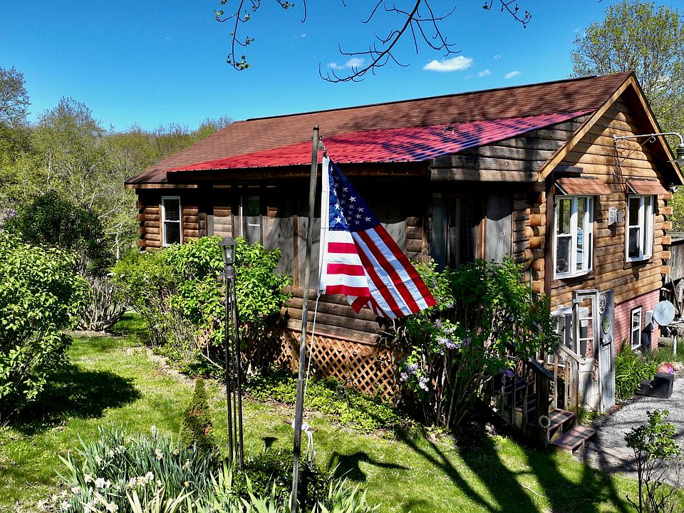Nestled in the serene landscape of Hillsboro, WV, this charming log home at Wannabe Farm presents a unique blend of rustic elegance and modern amenities. The exterior greets you with a covered, screened porch for enjoying the tranquil surroundings. The rear deck, is equipped with an electric roll-out sun awning, inviting comfortable outdoor living. Natural stone walkways lead through the property, enhancing its rustic appeal. Inside, the wide plank pine floors, pine-paneled walls create a warm, inviting atmosphere. The galley kitchen is a blend of functionality and style with its Shaker-style cabinets, laminate counters, and ceramic tile floor, complete with modern appliances. The home includes a finished walk-out basement that doubles as a main bedroom or art instruction space. " Log Home built in 1996