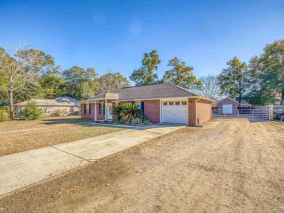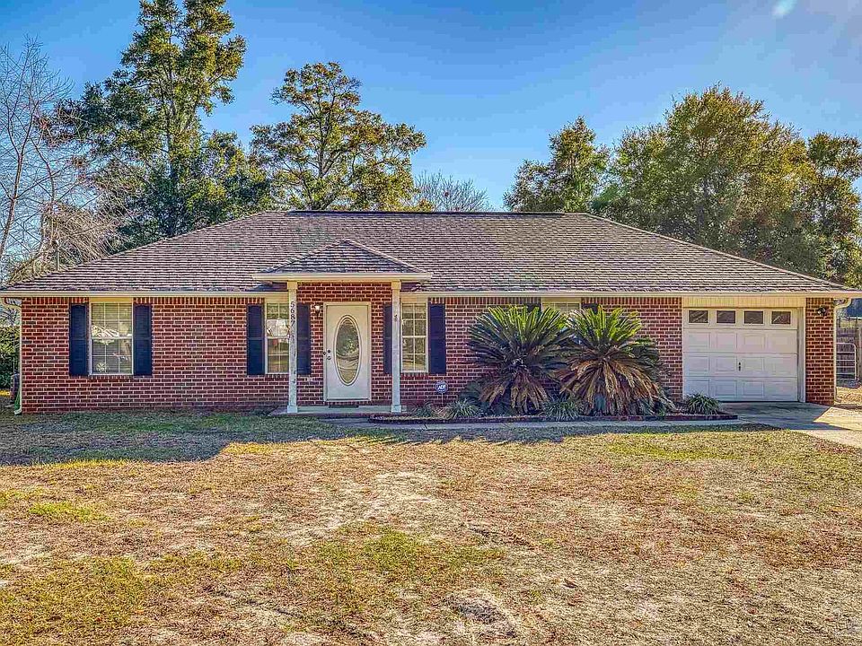Welcome to your charming brick home in the heart of Milton, where classic aesthetics meet modern comfort. This three-bedroom, two-bathroom residence spans just over 1300 square feet on a generous .31-acre lot, offering a perfect blend of space and coziness. As you step inside, the seamless flow between the living, dining, and kitchen areas immediately catches your eye. The well-designed layout creates an inviting atmosphere, making it easy to entertain guests or enjoy quality family time. The kitchen is equipped with appliances and ample counter space for your cooking adventures. Step outside onto the open patio, where the ambiance shifts seamlessly from indoor to outdoor living. Perfect for grilling and entertaining, the patio overlooks the fully fenced yard, providing a private area for relaxation and gatherings. The .31-acre lot offers plenty of space for outdoor activities, gardening, or even the addition of your own personal touch. Need extra storage? No problem. The property features a sturdy brick shed, providing the ideal space for storing tools, outdoor equipment, or creating a workshop – a versatile bonus that adds practicality to this already wonderful home. Situated in Milton, known for its community charm and convenient amenities. Book your showing now. Located just 22 minutes to downtown Pensacola, and just 31 minutes to Pensacola Beach.
