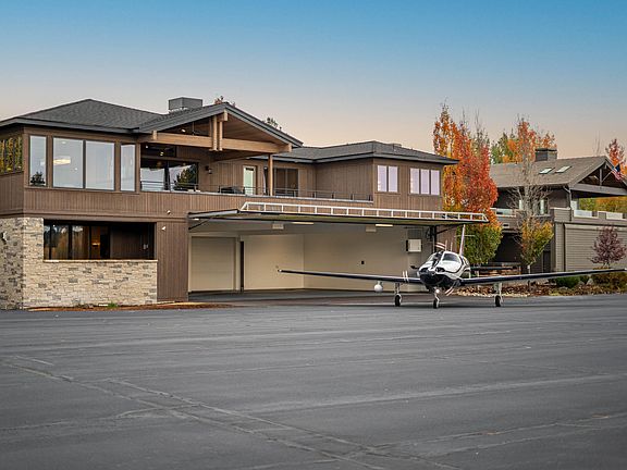 Stunning HANGAR home in Sunriver Resort! This newly completed home, located in the exclusive Sky Park area of Sunriver, presents a rare opportunity to own a luxury residence w/ taxiway access from Sunriver Airport for your aircraft to your hangar, surrounded by the scenic Deschutes River. The expansive great room features a wood ceiling, gas fireplace & captivating meadow views. The gourmet kitchen is a chef's dream, equipped w/ high-end oven/range, 2 dishwashers, pot filler, wine refrig, oversized refrig/freezer & spacious pantry. Outdoor living areas for relaxing in the hot tub or barbecuing while taking in the picturesque views. Four bedrooms, each w/ private baths, including a beautiful primary suite w/ wood ceiling, gas fireplace and luxurious bath w/ large shower & free-standing tub. Bonus room w/ wet bar is perfect for entertaining. Triple-car garage & hangar are a dream for all your toys, with or without an airplane. Sold furnished and ready for you to enjoy!
