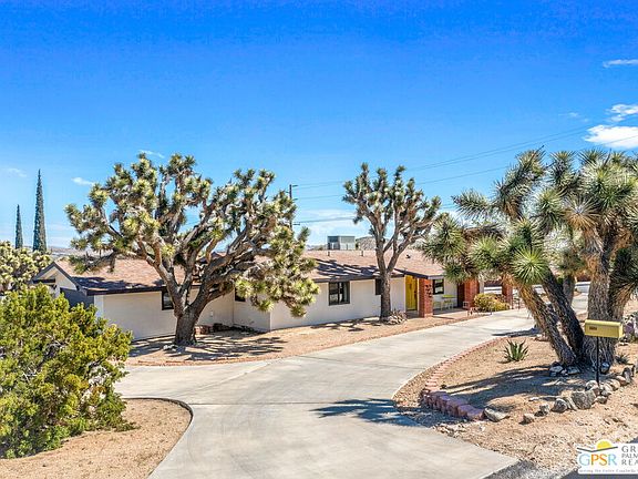 Driving past thousands of Joshua Trees, you arrive at 56884 La Cadena Rd in Yucca Valley, CA. This home embodies everything you've heard about the legendary laid-back lifestyle of the high desert. Respecting original design elements that capture the essence of time and place, you will also appreciate the many thoughtful updates creating a worry-free home: new windows and sliders, new heat pump, new refrigerator, new dishwasher, new hot water heater... (See list of improvements in the Docs section.) The open floor plan - grounded by newly polished concrete floors - creates a cozy and inviting atmosphere for you and your guests to enjoy and engage by the new Lopi wood burning fireplace. The primary suite offers a relaxing retreat with large windows that frame desert views - you are, after all, a stone's throw from Joshua Tree National Park, and in fact hiking trails are just a short distance from your front door (see area map in Docs section). There is a fun and funky wood-paneled bedroom currently used as an office, and an additional guest bedroom. Details such as lighting fixtures and cooking appliances, original to the house, add classic charm and authenticity. And the home is surrounded by massive Joshua Trees, Century plants, and cacti of all varieties. Framed by new privacy fencing, the backyard features a stone paved patio, more local desert landscape, and several different usable areas. With its thoughtful design inside and out, this residence truly captures the casual appeal of high desert living. Note that most of the furnishings are available outside of escrow.
