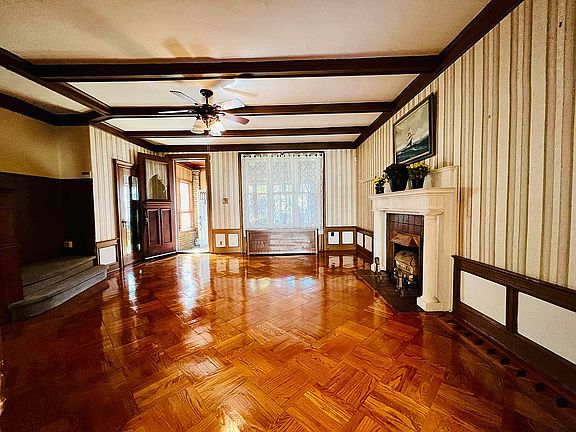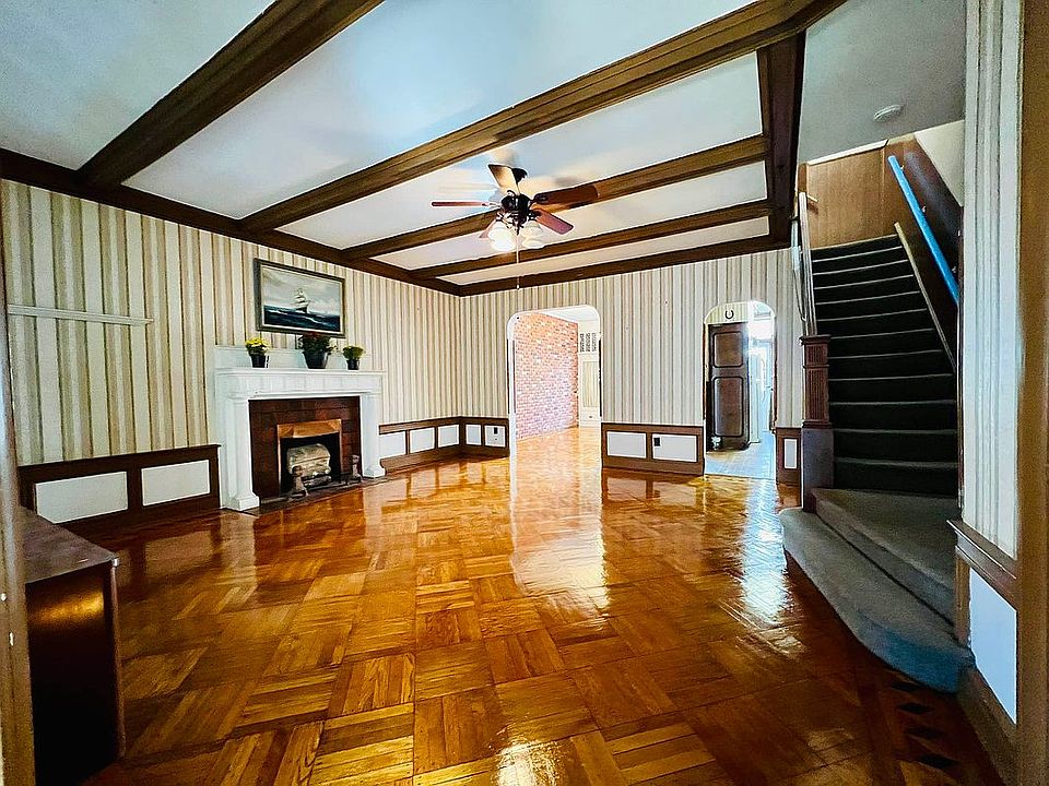 Charming 1 Family Brick Townhouse with Parking located a tree lined block in Bay Ridge. Upon entering this house one is greeted with beautiful original turn of the century Arts and Crafts details. The spacious living room is large and accommodating with parquet floors, high coffered ceilings and an original gas fireplace. The Living Room flows seamlessly into the large formal dining room. The Dining Room features original built in China Cabinets, original woodwork and parquet floors. There is a modern kitchen that leads out to the backyard. There is a parking space in back which is extremely convenient. Upstairs the original stained glass sky light illuminates the hall and staircase. There are four spacious bedrooms and a walk-through closet with original built in wardrobes and a full bathroom. There is a full basement with front and rear entrances. A beautiful home, in a prime location with parking!