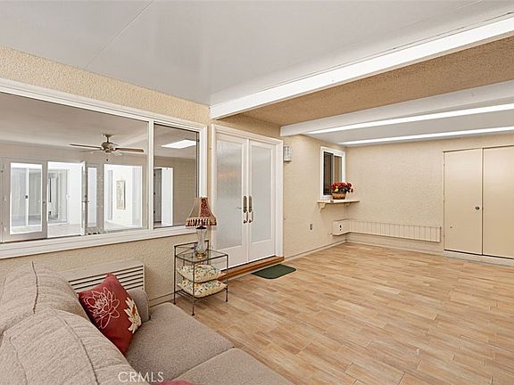 Exquisitely remodeled End unit, single-level "Cordoba" Co-op, peacefully overlooking a park setting, with built-in Washer/Dryer, remodeled with petrified-wood look granite countertops in Kitchen and granite in both bathrooms. Through your front door, enter into an enclosed Patio (with an additional open-air Atrium within the property as well, to enjoy the stars within the warmth of your home). Custom 'Rain-Glass" double front doors open into a formal living room, designer kitchen and dining room (with Atrium visible), new carpet in both bedrooms, otherwise Italian porcelain flooring (to look like wood) throughout. Double pane windows into living room, French doors w/clear view side panels, multiple skylights, LED canned lights, and center Atrium flood the home with natural light. For the discriminating buyer that wants it all; no expense spared with predesigned accents including smooth ceilings throughout, custom Kitchen featuring Italian tumbled-tile backsplash, recessed lighting, newer honey-spice Kensington maple cabinets, apron front sink, stovetop, dishwasher, and waiting for you to choose your refrigerator from HOA. Just painted throughout, a corner model (and a quieter location due to the distance from major roads), the large, enclosed patio (with w/d) has finished flooring and abundant outdoor space to use as an additional room to enjoy rainy nights and movies, outdoor living brought inside! Steps away from the popular Serpentine Walk, close to Clubhouse 1, with access to an Olympic size pool, gym, etc. Within walking distance to the Performing Arts Center (Clubhouse 3) and the sanctuary/creek (where you can enjoy wildlife and nature walks), Active, adult 55+ resort-style living at its best. Enjoy all the amenities of Laguna Woods Village w/guarded gates, 7 clubhouses, 5 swimming pools, 27-hole Championship Golf course, Tennis courts, Horseback riding, Yoga, Ti Chi, Chi Gong, Painting, Badminton, Performing Arts, Computer labs, woodshop, dancing, 2 Fitness centers w/trainers, as well as over 250 clubs to join, and close to Laguna Beach. Water, trash, sewer, amenity access and Cable are included in the HOA fee (pls see www.LagunaWoodsVillage.com).