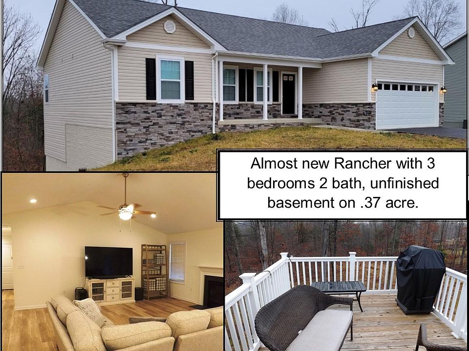 Don't wait to build, this home is practically brand new. Seller has been transferred and has lived in home less than 9 months. Open floor plan with lots of upgrades. luxury Vinyl plank flooring in kitchen, dining, great room and hallway. Kitchen features granite countertops, large island, stainless steel appliances. Oversized great room with gas fireplace and lots of natural light. Primary bedroom has tray celling, walk in closet and luxury primary bath with double bowl sink, walk-in shower, ceramic tile flooring. 2 additional bedrooms, 2nd full bath and laundry room complete main level. 2 car attached fully finished garage with opener. Covered front porch, Deck off dining area. Unfinished basement with 3 piece rough in for future bath, insulation, walkout door and lots of window light. Very private backyard, seller has done additional excavating on backyard. Disclosure, seller has not had a propane tank installed. That will be buyer responsibility after closing.