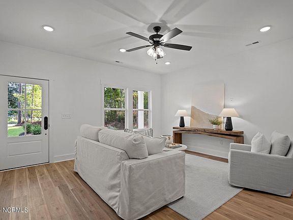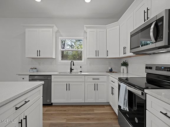 JUST COMPLETED and move in ready!! This 3 bedroom, 2 bathroom, 1401 sqft new construction home is nestled amongst the trees for ultimate privacy! Just inside the front door, you'll be greeted by the open and bright living room and kitchen. Kitchen features include custom cabinetry, soft close hardware, quartz countertops with overhang on the island to accommodate room for seating, stainless steel appliances (stove/oven, dishwasher, microwave, fridge), garbage disposal, and a walk-in pantry with custom wooden shelves. Down the hallway, you'll find the primary suite and 2 guest bedrooms! The primary suite has a walk in closet and in the bathroom quartz countertops, custom cabinetry, black hardware, and a shower. The guest bathroom also has custom cabinetry and quartz countertops, in addition to a tub. There is attic access in the garage, not to mention a custom built drop zone right off the garage entry for added storage! On the outside, this home is topped off with fiber cement siding, a two car garage, and professional landscaping. Carolina Shores North amenities include an outdoor pool, community center, playground, tennis, and picnic area. Short driving distance to the sandy shores of Sunset Beach and plenty of shopping & dining options in Calabash and Little River!! Standard house features list and 1 year Limited Builders Warranty information available to review upon request. This property is within the Carolina Bays Parkway vicinity. Don't miss out on this limited opportunity to secure a brand new home in Carolina Shores North constructed by a reputable local builder!!