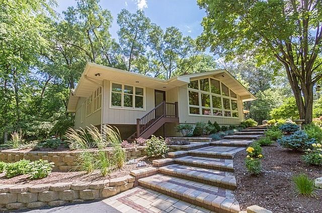 Wonderful 4 Bedroom Hillside Ranch situated on a stunning, private, professionally landscaped lot with shared pond. Gorgeous hardscaping surrounds the thoughtfully planned gardens, up the steps to the patio and front entrance. Lovely open floor plan. Huge Living and Family Rooms with wall of windows, soaring ceilings and two-sided floor-to-ceiling stone fireplace. Separate Dining Room. Kitchen with big Breakfast Room. The large Master Bedroom Suite has updated bathroom with heated floors and overlooks this picturesque lot. Tranquil Three Season Sun Room with slate flooring. First floor Laundry Room. Beautiful partially finished lower level with sophisticated weathered look vinyl plank flooring complete with Sauna and additional large unfinished space. Reverse Osmosis system to kitchen faucet and ice maker. Freshly painted and new carpeting just installed. Truly a special house.