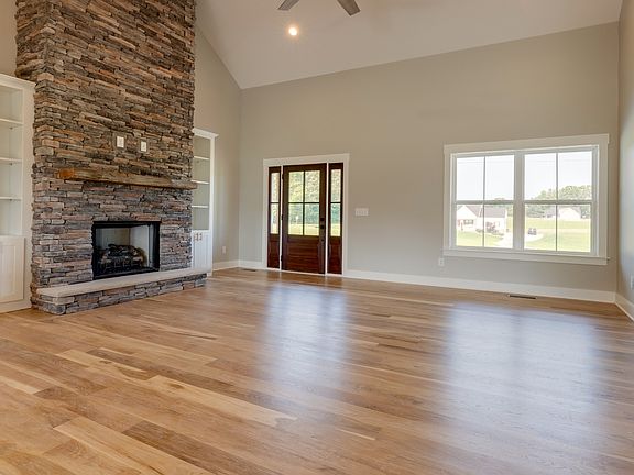 Absolute stunning new construction in Burns, TN! Sand and Finish hardwood floors throughout, tall ceilings, Kitchen Aid appliance package with gas cooktop and a wine cooler, stacked stone fireplace in the living room, master bedroom with trey ceiling, large soaking tub with separate walk-in shower, and a huge walk-in closet. Additional bedrooms have large closets and natural light flowing in. The upstairs bonus room also includes a full bathroom. It also features an oversized garage, a utility room with tile floors, a utility sink, and large storage closets. Outside is over an acre of land with a large concrete drive, an inviting covered front porch, and a covered deck on the back of the home.